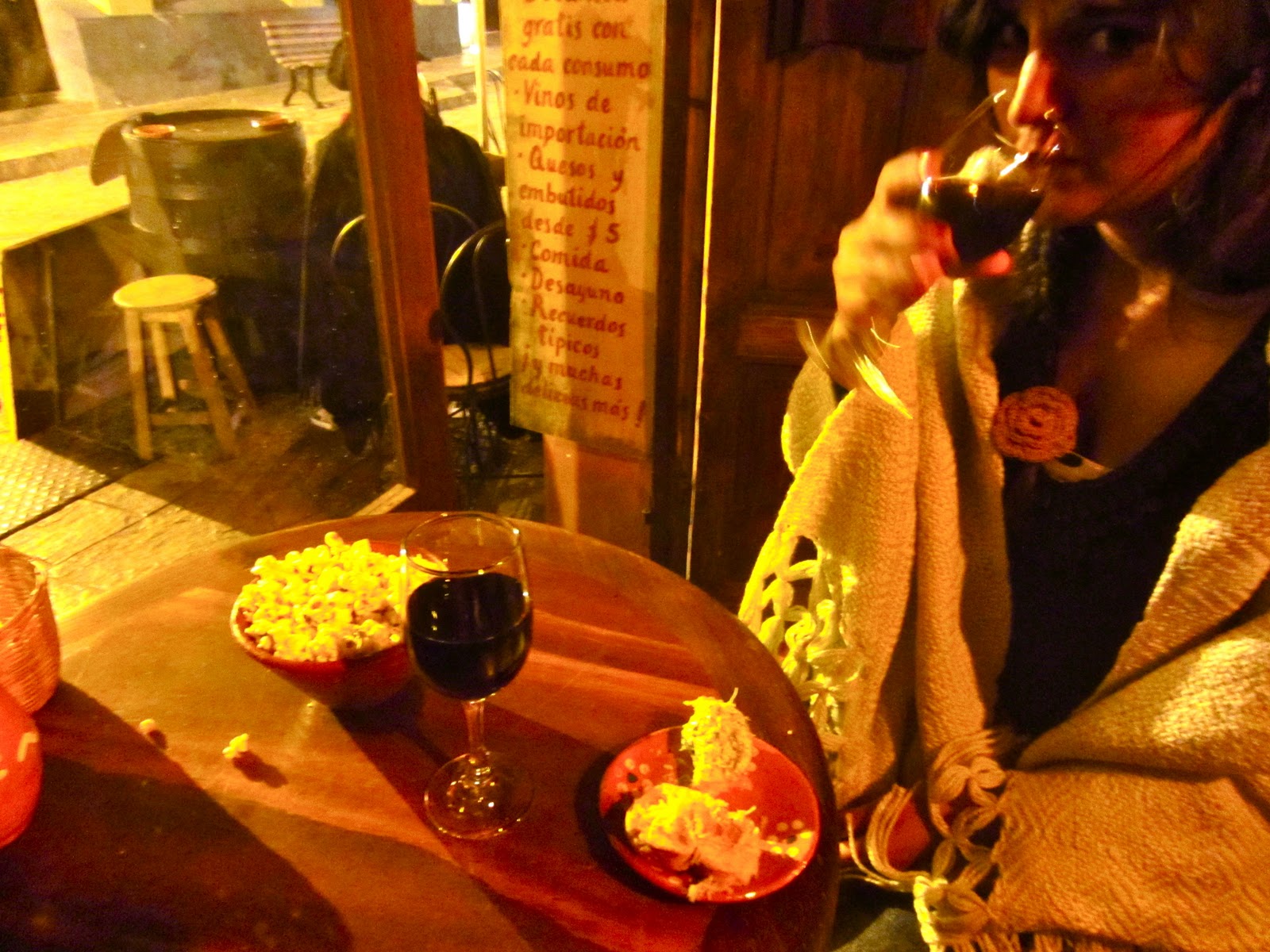 We stumbled upon hostel named Casa Blanca that did in fact have an adorable fluffy white dog named Blanca. For $5 a night got us our own room on the lake, a kitchen with the cleanliness level of home, wifi and HOT SHOWERS. I almost cried with joy being that hot water has been a luxury I have had to leave at home and the excitement didn’t end there. The Israeli owner had decided to make a huge dinner of his homeland food, flaffel, fried eggplant, cabbage, tomato salad and French fries. And he invited anyone staying at the hostel to help themselves for free! Being that Lauri and I had dubbed this day as indulgence day, I suppose it made sense to end the day in such a manner. The Israeli food was literally some of the best food I have ever had in my life. Following dinner, fat and happy we sat with a few of the Israelis lakeside, sipping tea as Lauri and I cuddled under a blanket. I have to say it’s nice to feel a bit cold again.